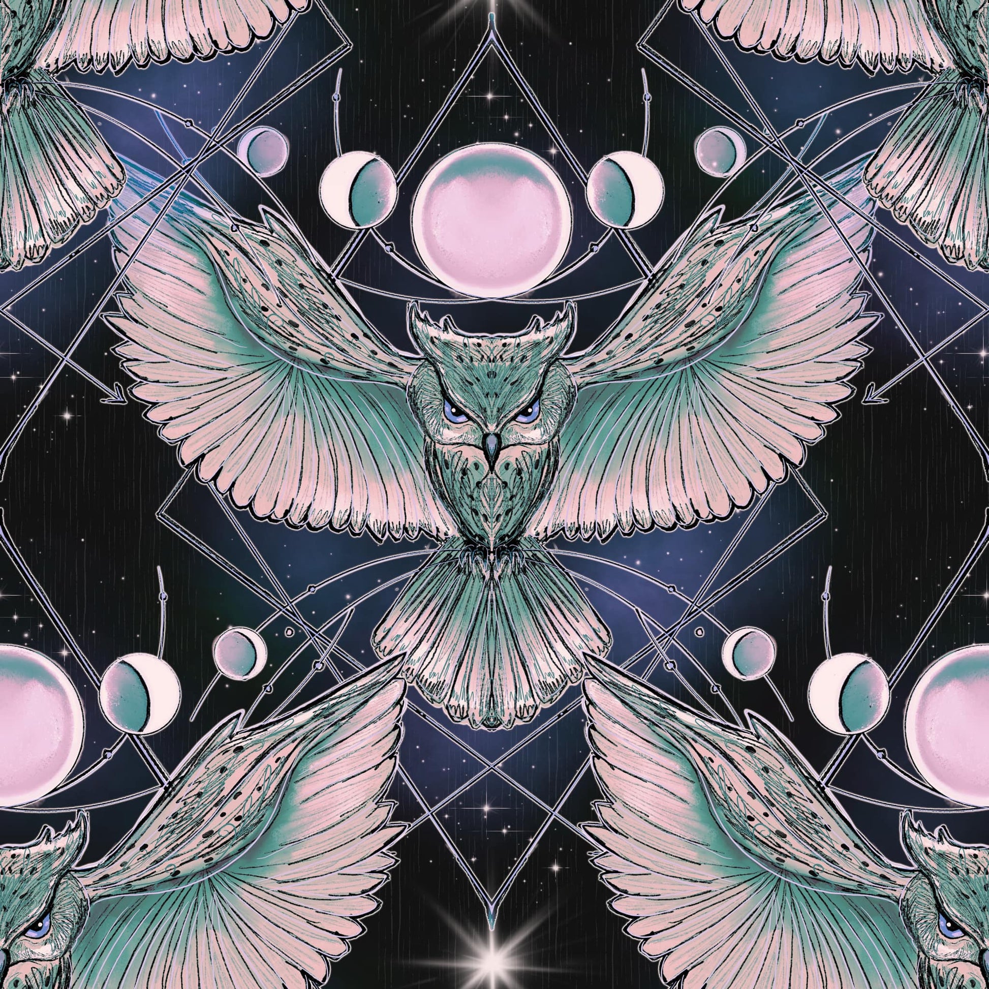 Owl white teal wings